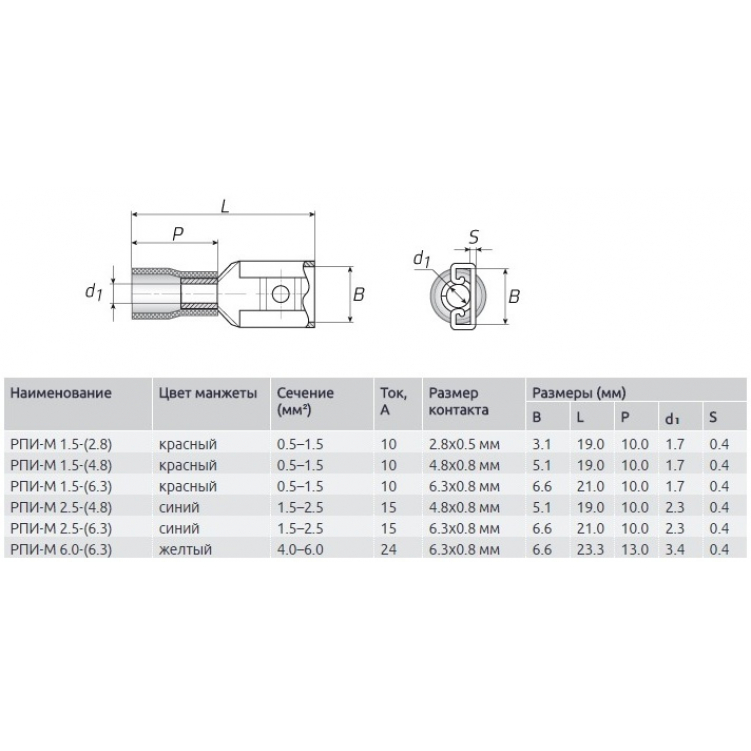 • размер контакта определяется шириной «В» клеммы РПИ-П