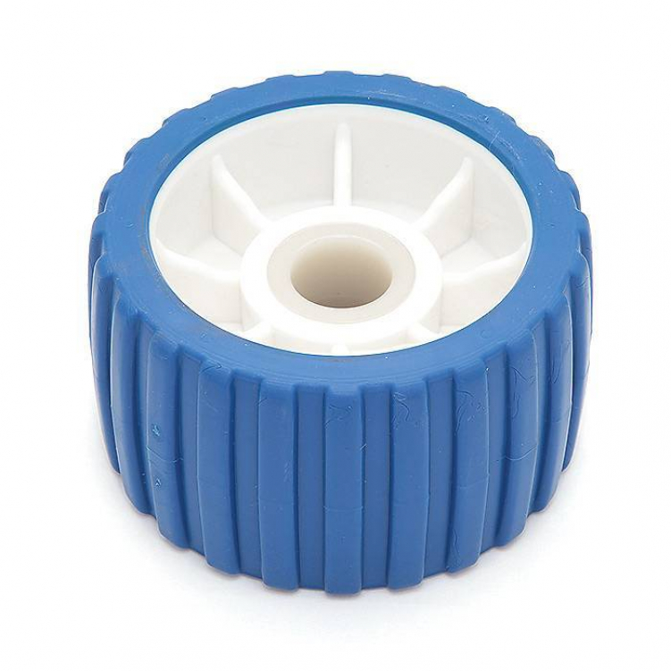 Ролик имеет ребристую поверхность, ось расположена по центру.
