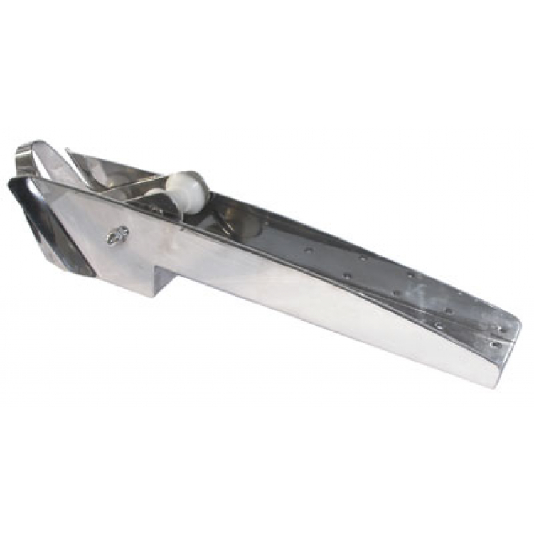 Роульс из полированной 5-миллиметровой нержавеющей стали. Снабжен коромыслом, облегчающим спуск и подъем якоря. Пригоден для всех типов безштоковых якорей весом 15-30 кг.