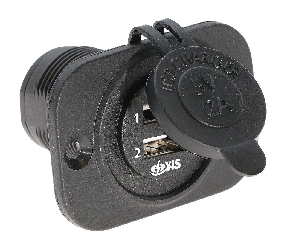 Гнездо питания с двумя USB гнездами и крышкой для защиты от попадания влаги. Два USB гнезда позволяют заряжать два устройства одновременно.