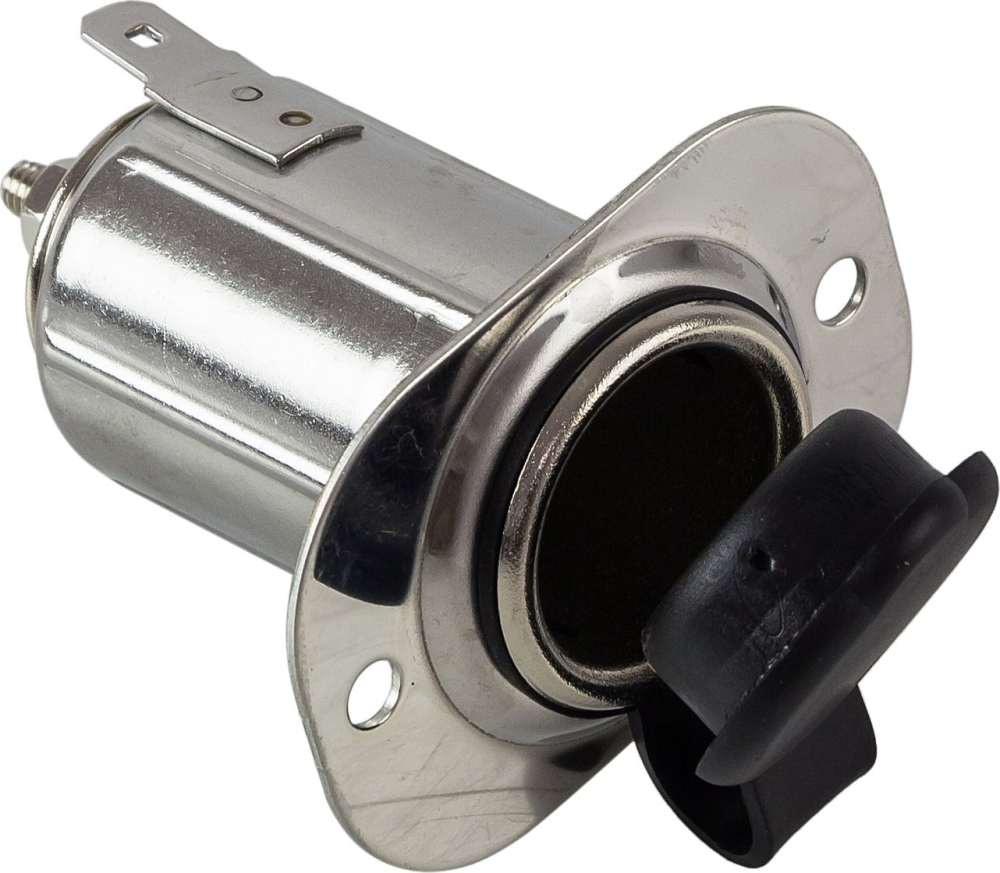 Гнездо прикуривателя из нержавеющей стали. Крышка для защиты от попадания воды. Внимание! Данное гнездо предназначено для подключения различных электроаксессуаров и навигационного оборудования, но не годится для использования с традиционными прикуривателями для сигарет!