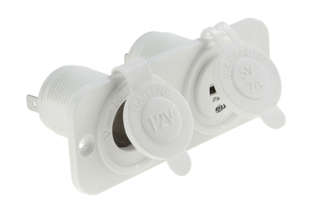 Панель с USB-разъемом 5В 2.1А и прикуривателем, белая.