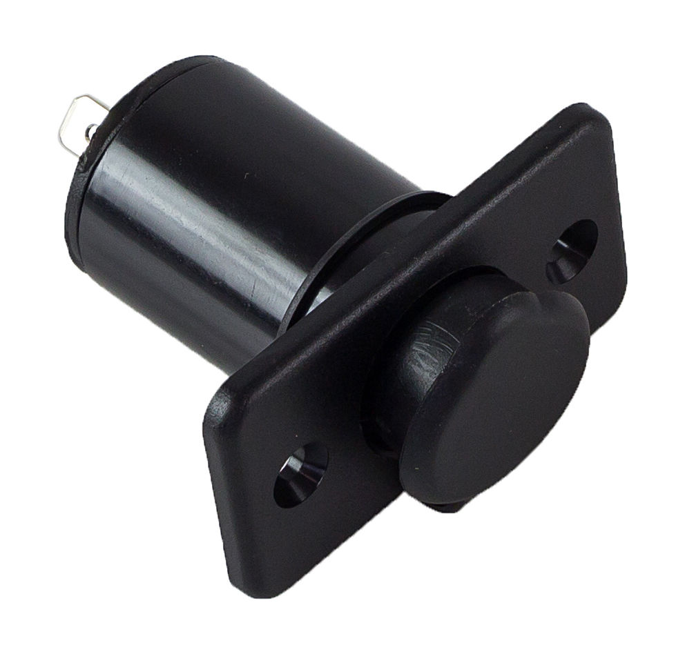 Гнездо прикуривателя из пластика с резиновой крышкой. Использоваться для подключения переносного электрооборудования.