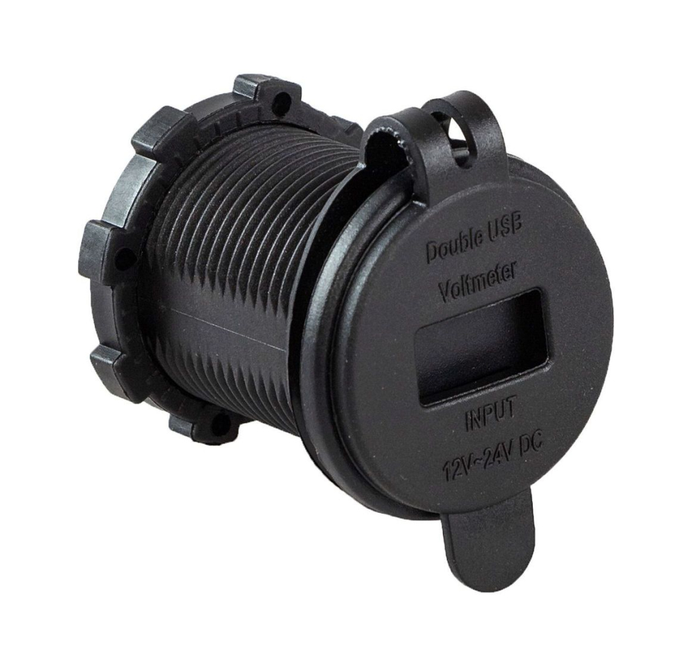 Врезной USB разъем на два порта плюс цифровой вольтметр. Служит для питания и зарядки электронных гаджетов, а также для контроля напряжения бортовой сети.