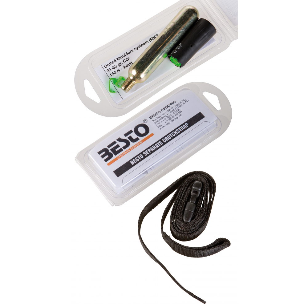Комплекты перезарядки и отдельные компоненты, необходимые для перезарядки и обслуживания надувных спасательных жилетов Besto. Также могут использоваться для перезарядки и обслуживания любых других марок надувных жилетов, имеющих соответствующие механизмы наполнения.