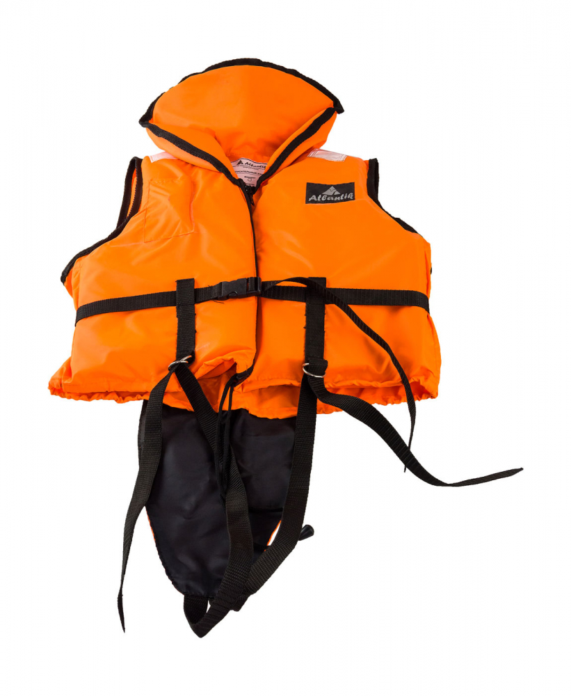 Жилет имеет паховый ремень,свисток,подголовник,светоотражающии ленты,ручку-захват для извлечения ребенка из воды.