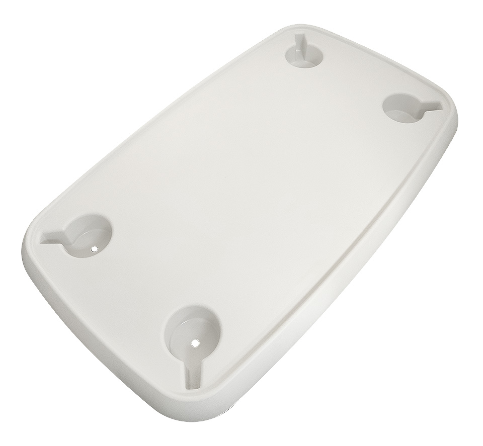 Столешница из белого пластика. Стойкая к ультрафиолету и загрязнениям. Имеет бортик, препятствующий соскальзыванию предметов, и отформовки под чашки/стаканы.