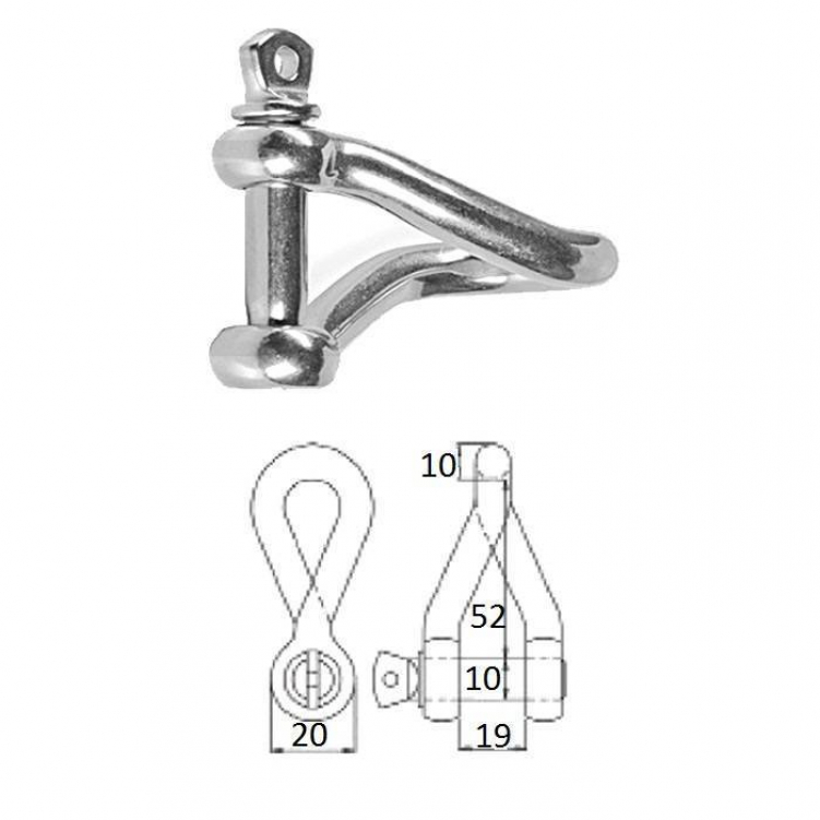 Скоба такелажная изогнутая с винтовым пальцем 10 мм сталь AISI 316