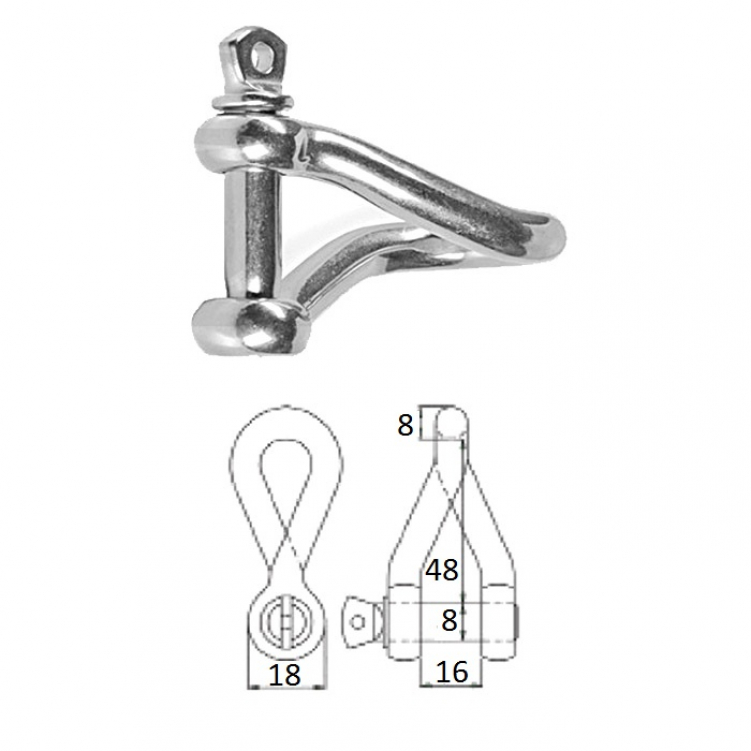 Скоба такелажная изогнутая с винтовым пальцем 8 мм сталь AISI 316