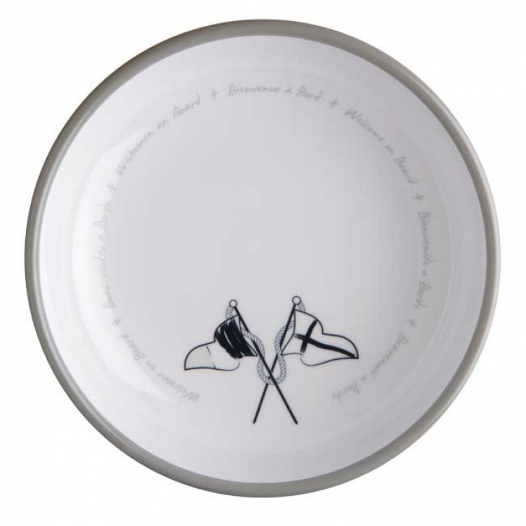 Набор глубоких тарелок из меламина — стойкого к ударам и царапинам керамоподобного пластика. Тарелки имеют резиновый ободок на дне, препятствующий скольжению по поверхности стола.