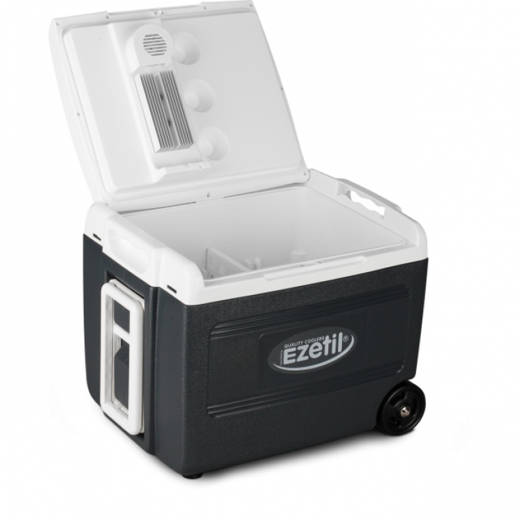 Принцип действия термоэлектрического контейнера (холодильника) основан на свойстве полупроводниковых пластин, это свойство получило название "эффект Пельтье". При протекании тока через полупроводниковую пластину одна сторона ее охлаждается (этой стороной пластина обращена внутрь контейнера), другая сторона - нагревается (эта сторона обращена наружу и охлаждается вентилятором).