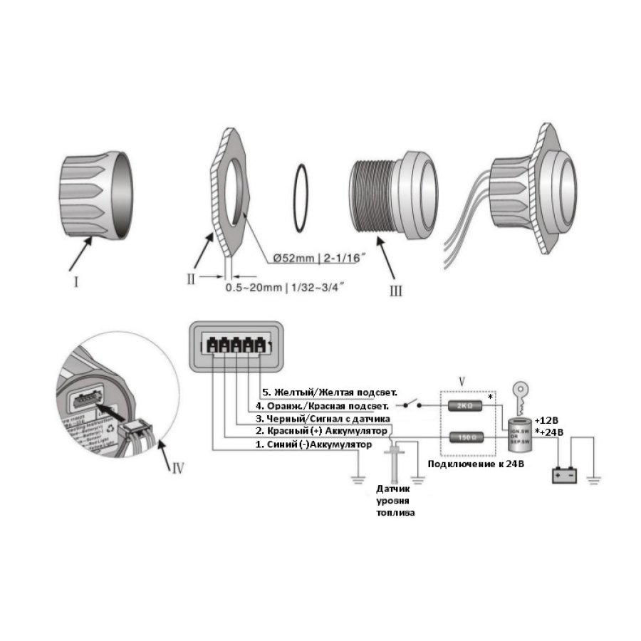 Следует обратить внимание, что указатель уровня жидкости подбирается по сопротивлению датчика, установленного в бак.