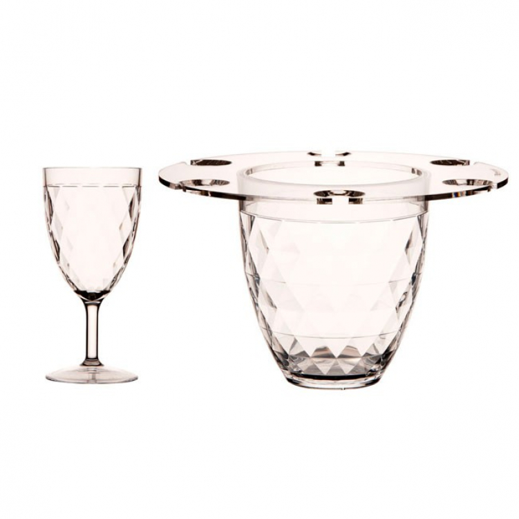 Ведерко из прозрачного акрилового стекла с держателями для шести бокалов из стойкого к царапинам метилстирена (входят в комплект).