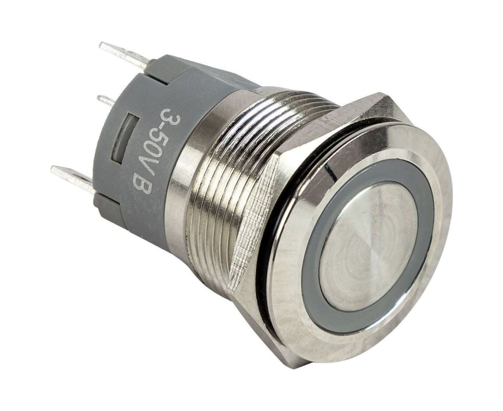 Кнопка без фиксации, подсветка синяя, 12 В, 20А, 19мм