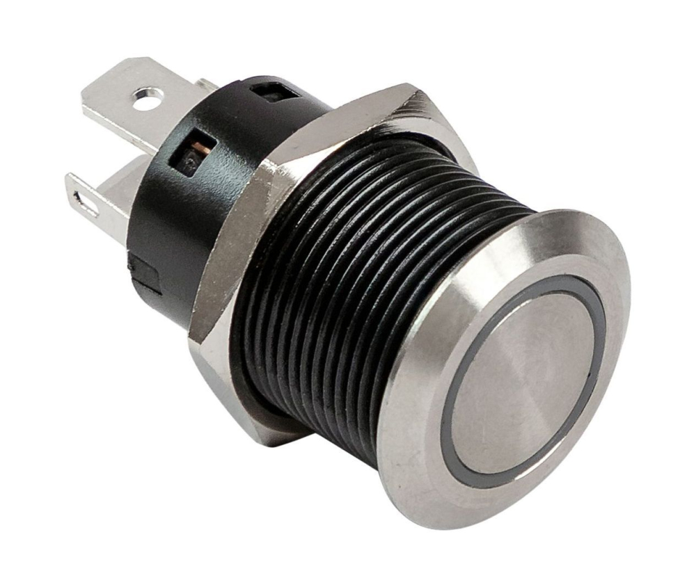 Кнопочный выключатель с фиксаций из нержавеющей стали со светодиодным кольцом.