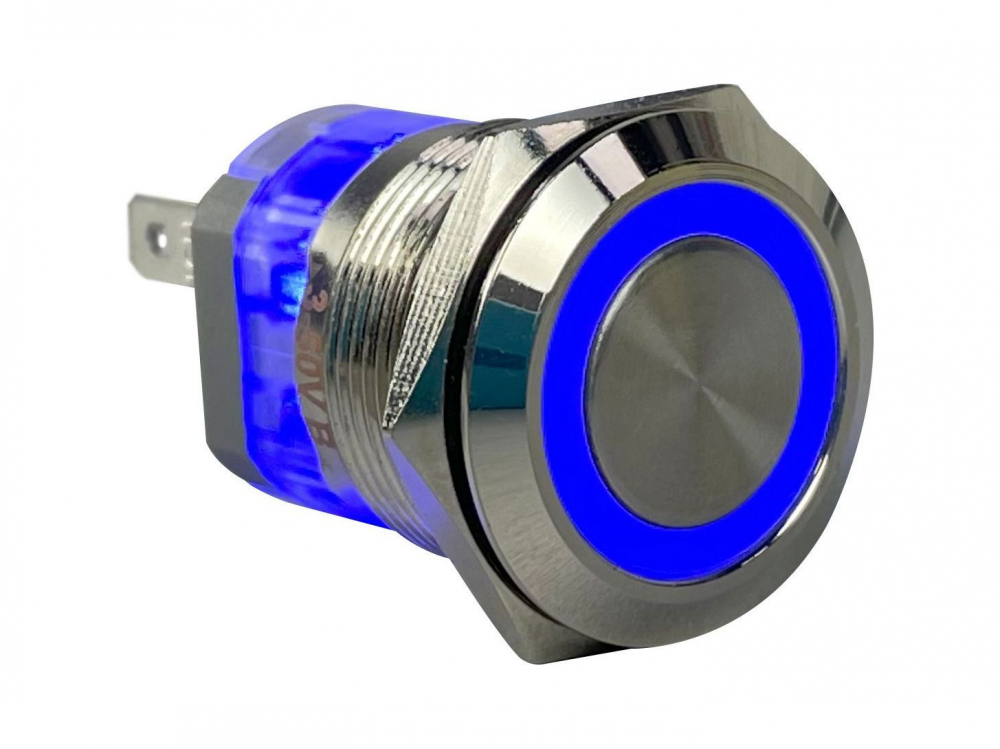Кнопка с фиксацией, подсветка синяя, 12 В, д. 22мм.