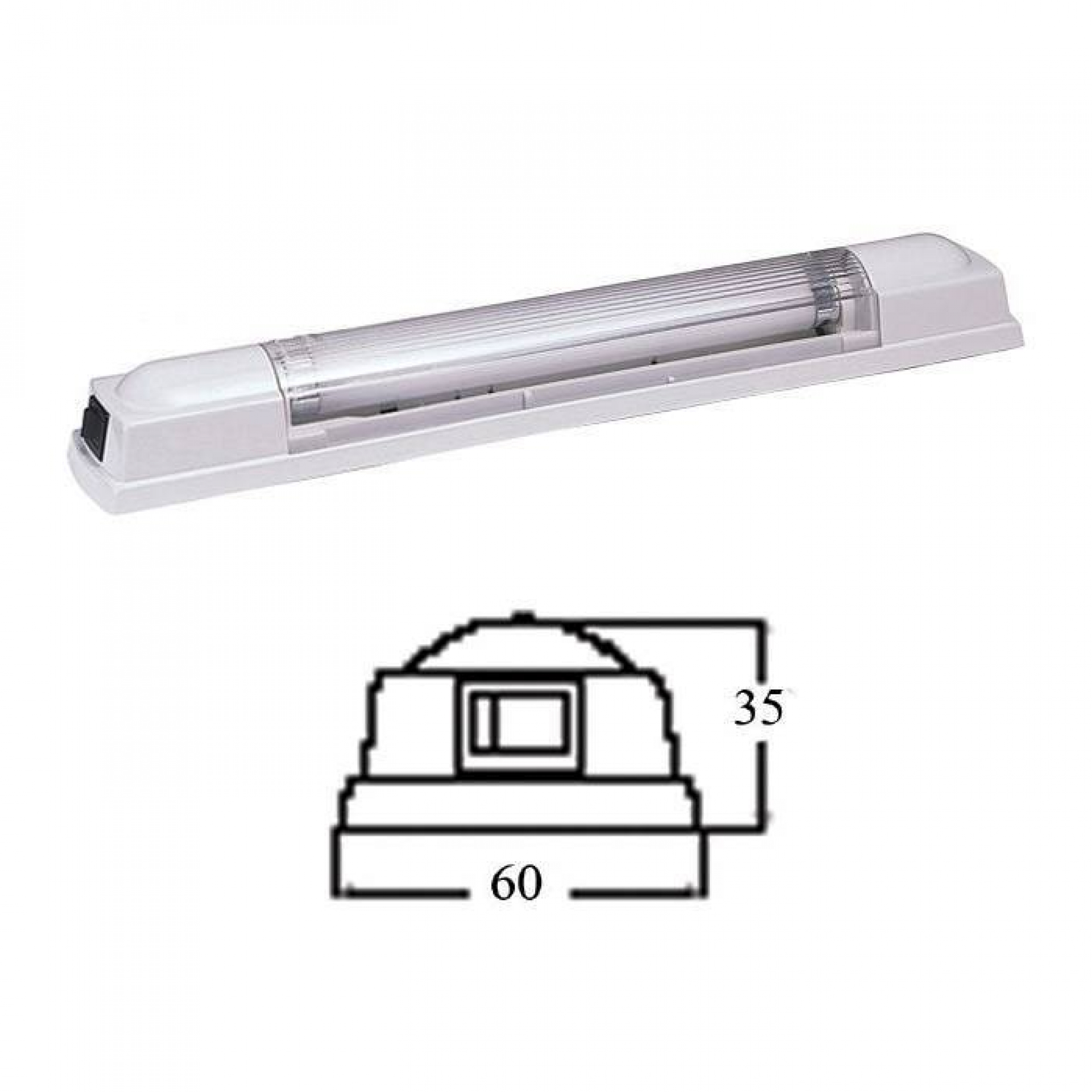 Светильник интерьерный флуоресцентный энергосберегающий накладной в пластмассовом белом корпусе.
