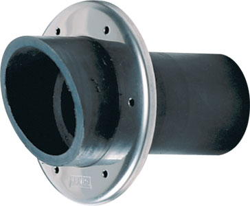 Резиновый выхлопной патрубок с фланцем из нержавеющей стали. Может быть напрямую соединен с жесткими элементами линии выхлопа (глушителями, гуськами и т.д.). Для соединения с выхлопным шлангом требуется жесткий переходной патрубок.