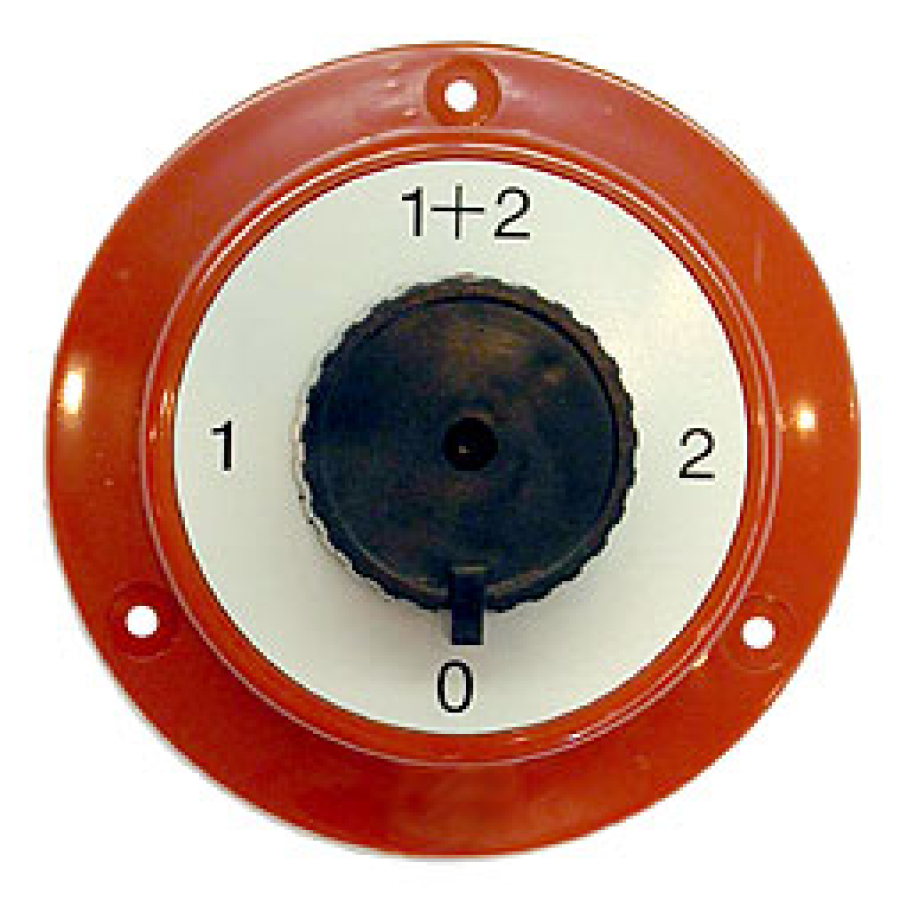 Переключатель для коммутации аккумуляторных батарей. Имеет четыре позиции: аккумулятор № 1, аккумулятор № 2, оба аккумулятора включены, оба аккумулятора выключены.