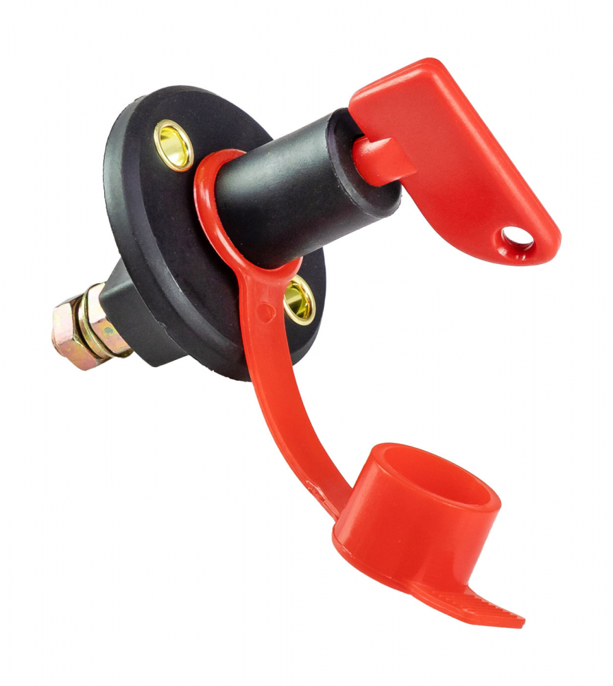 Выключатель массы в пластиковом корпусе, имеет съемный пластиковый ключ.
