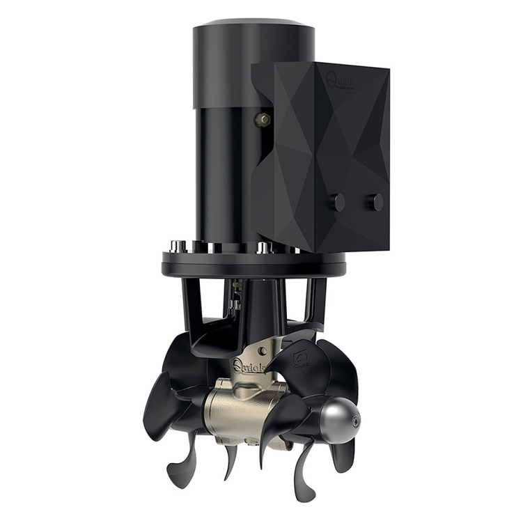 Электрические подруливающие устройства с двумя гребными винтами, обеспечивающими большую эффективность и меньший уровень шума. Легко устанавливаются и не требуют обслуживания. Предусматривают защиту от перегрева двигателя и задержку переключения реверса (при использовании пультов управления или джойстиков «Quick»). Редукторы винтов снабжены эластичными муфтами для снижения нагрузок при реверсировании.