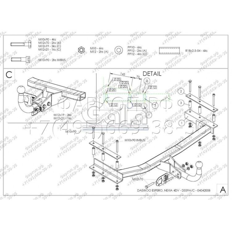 Полностью ОЦИНКОВАННЫЙ фаркоп на Daewoo Nexia седан 1995-2010, Daewoo Espero седан 1995-1997. Тип шара: C (горизонтальный съемный). Установка без снятия и выреза бампера. Нагрузки: 1100/50 кг, масса фаркопа 15,25 кг