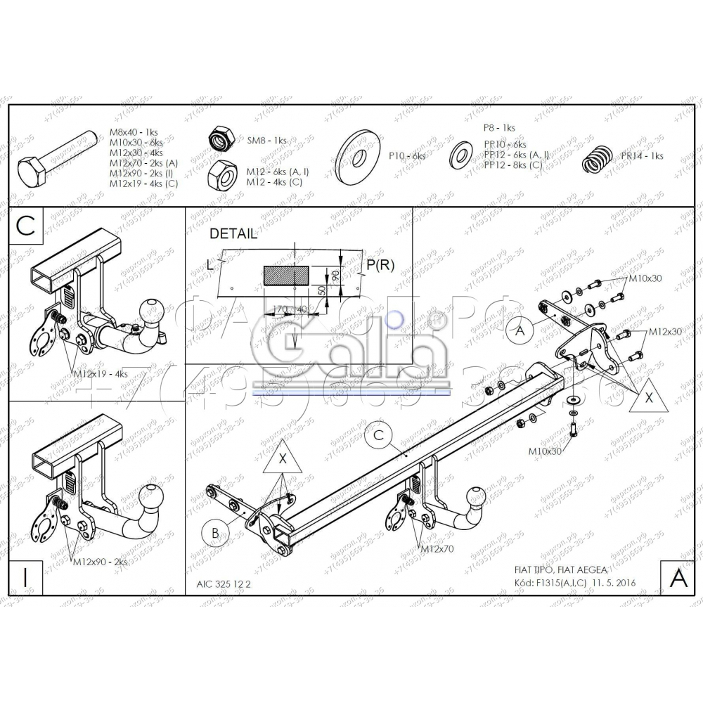 Фаркоп FIAT Tipo седан, Aegea 2015- F131C GALIA купить в Москве