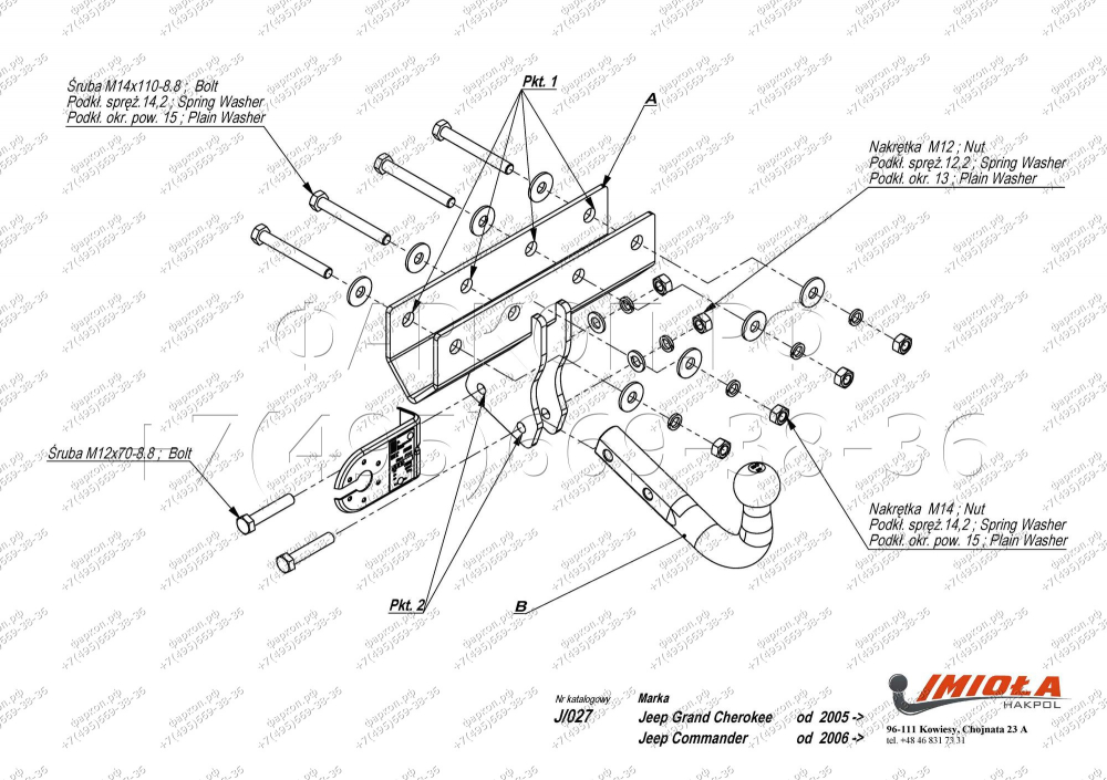 Фаркоп Jeep Grand Cherokee WK 2005-2012, Commander 2006-2010 - J.027 IMIOLA купить в Москве