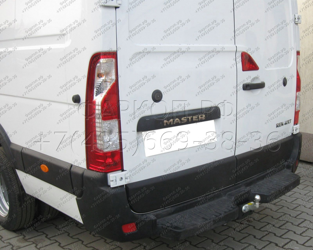 Фаркоп на Renault Master фургон, микроавтобус (со ступенькой) задний привод, двойные колеса 04/2010- / Opel Movano фургон, микроавтобус (со ступенькой) задний привод, двойные колеса 04/2010- без снятия и подрезки бампера. Тип шара: F. Нагрузки: 3000/120 кг, масса фаркопа 25,2 кг