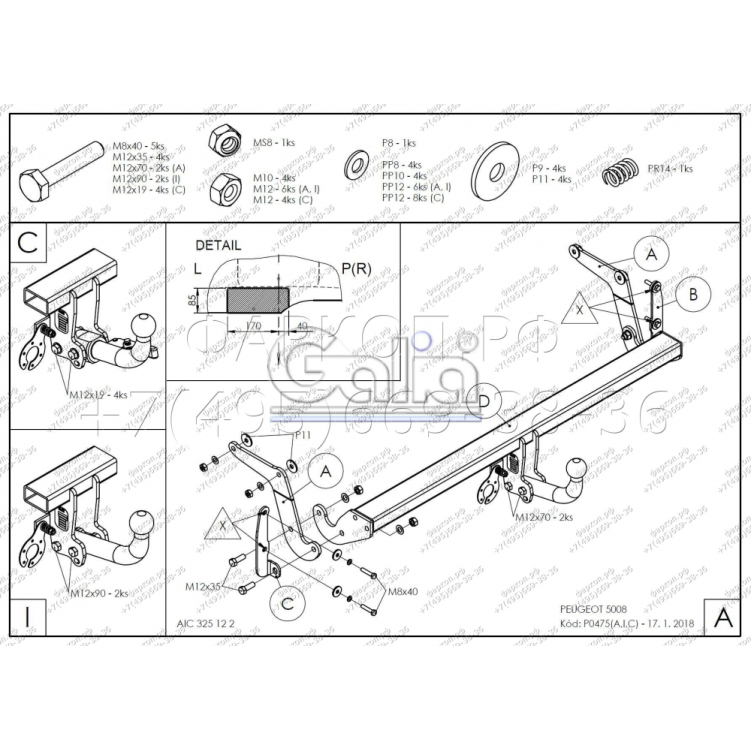 Фаркоп Peugeot 5008 2017- P047A GALIA купить в Москве
