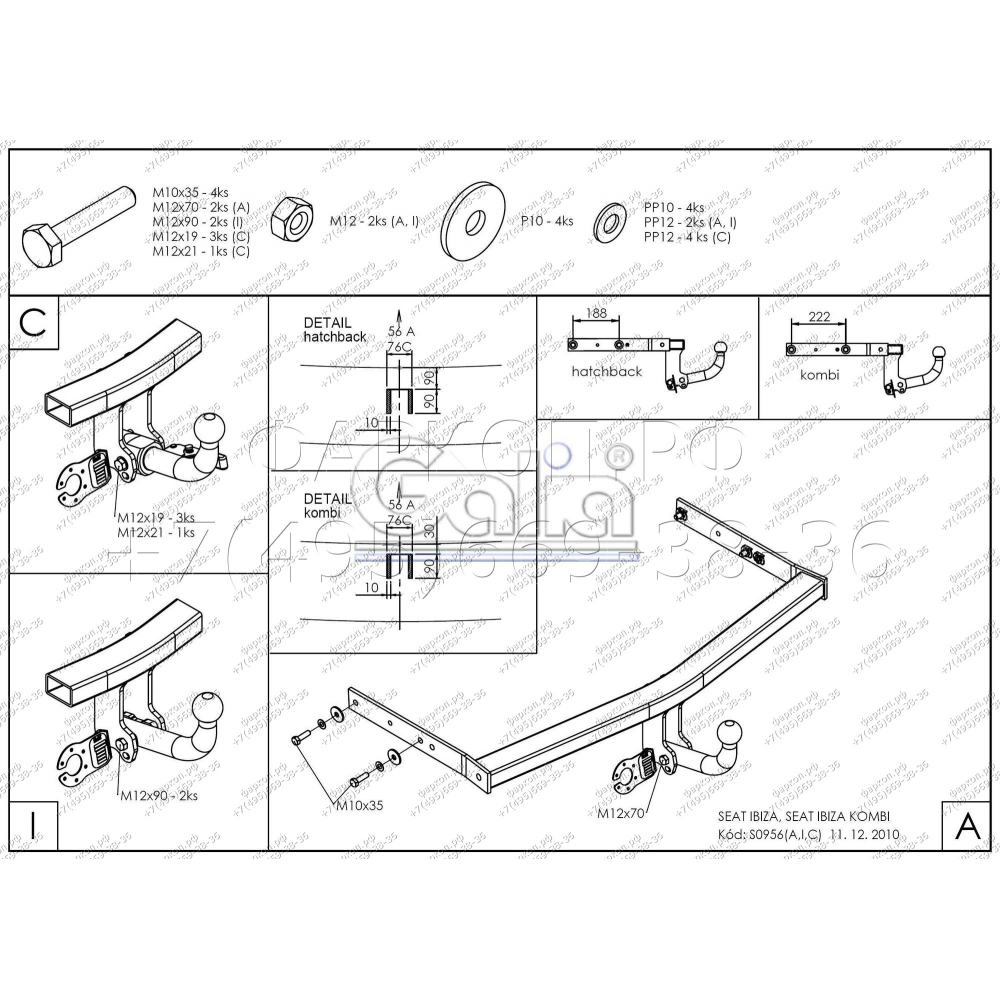 Фаркоп SEAT Ibiza IV хетчбек 3/5 дверей 2008-2017, Ibiza ST универсал 2010-2017 - S095A GALIA купить в Москве