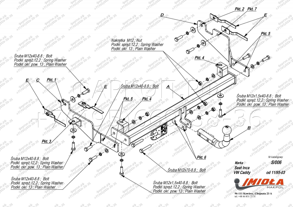 Фаркоп SEAT Inca, Volkswagen Caddy 1995-2003 - S.006 IMIOLA