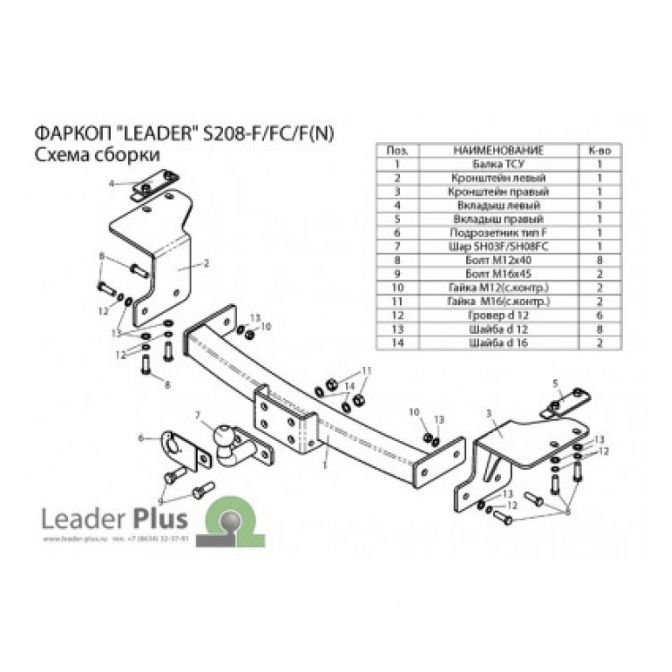 Фаркоп Ssang Yong Action Sports 2006-2011 - S208-FC Лидер-плюс