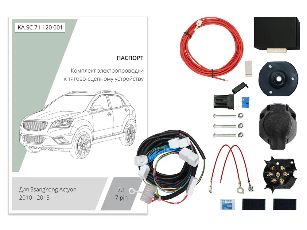 Комплект электропроводки с блоком согласования. Подключение осуществляется к штатным разъемам автомобиля SsangYong Actyon с 2010-2013 г.в. Такой способ подключения исключает вмешательство в электрическую сеть автомобиля и позволяет смонтировать электропроводку фаркопа быстро и самостоятельно. Каждый комплект разрабатывается под конкретную модель автомобиля с учетом ее особенностей. Температура эксплуатации от -40°C до +45°C.