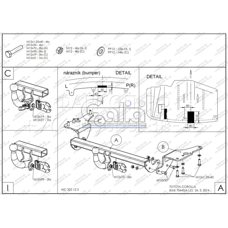 Полностью ОЦИНКОВАННЫЙ фаркоп на Toyota Corolla седан E170 2013-2019. Тип шара: A. Невидимый вырез бампера. Нагрузки: 1600/75 кг, масса фаркопа 15,22 кг
