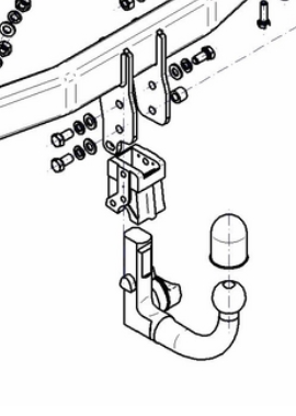 Фаркоп на Volkswagen Golf VII универсал 2013-2019. Требуется подрезка бампера. Тип шара: AV (вертикальное быстросъемное крепление шара на ключе). Нагрузки: 2000/80 кг, масса фаркопа 17,6 кг