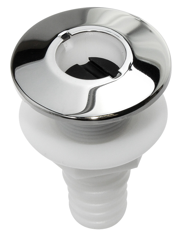 Горловина с резьбовым креплением (крепежная гайка в комплекте) и штуцером под шланг диаметром 19-25 мм. Наружный фланец диаметром 49 мм имеет декоративную накладку из нержавеющей стали. Предлагается в двух вариантах - стандартном и с лепестковым клапаном, препятствующим обратному проникновению воды.