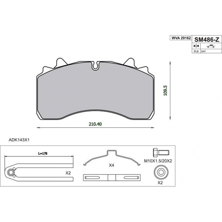 Колодки тормозные дисковые 4 шт. с уст. комплектом 210,4х109,5х31 WVA 29162 SAF