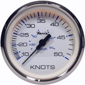 Метрический, посадочный диаметр 86 мм. Позволяет определять скорость судна относительно воды в пределах от 10 до 50 узлов (вторая шкала от 20 до 90 км/час). Напряжение питания 12-16 Вольт. Измерительный датчик (трубка Пито) в комплект прибора не входит. Прибор можно использовать со штатно установленной трубкой Пито на лодочном моторе. Цвет: белый.