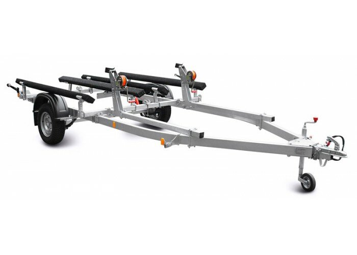 ● Передвижные ложементы могут быть установлены в любой точке поперечен рамы, в т. ч. и над крыльями прицепа, имеют регулируемый угол наклона и регулируемую высоту. Это позволяет установить их в наиболее удобное положение, избежать давления на продольные реданы, а также расположить технику максимально низко, тем самым обеспечить устойчивость прицепа при движении и осуществлять спуск судна на воду меньшей глубине. При перевозках и хранении судна на прицепе ложементы позволяют равномерно распределить вес техники и уменьшить давление на корпус судна.