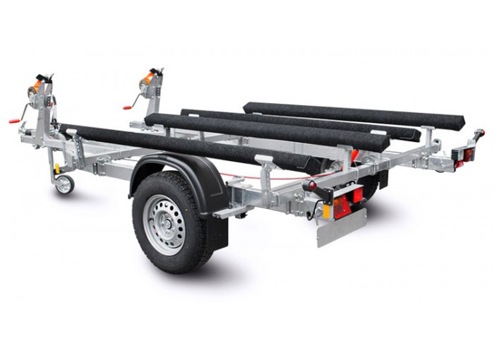 ● Передвижные ложементы могут быть установлены в любой точке поперечен рамы, в т. ч. и над крыльями прицепа, имеют регулируемый угол наклона и регулируемую высоту. Это позволяет установить их в наиболее удобное положение, избежать давления на продольные реданы, а также расположить технику максимально низко, тем самым обеспечить устойчивость прицепа при движении и осуществлять спуск судна на воду меньшей глубине. При перевозках и хранении судна на прицепе ложементы позволяют равномерно распределить вес техники и уменьшить давление на корпус судна.