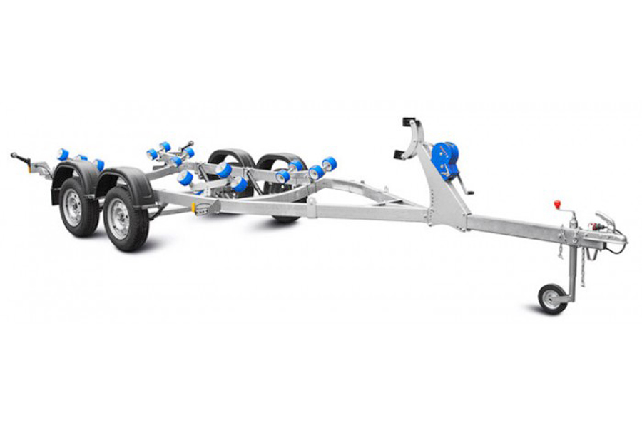 ● Роликовые опоры обеспечивают удобный спуск судна на воду и его подъём на сложных, необорудованных участках берега, где нет возможности заезда прицепа на достаточную глубину. Четыре роликовых модуля, с четырьмя роликами на каждом, могут быть установлены в любой точке поперечины рамы, их оцинкованный кронштейн имеет саморегулируемый угол наклона, а каждая пара роликов самостоятельно подстраивается под обводы судна. Такая конструкция облегчает центрирование и обеспечивает удобную поддержку судна и при его загрузке и выгрузке под большим углом. Вспомогательный килевой ролик на задней поперечине обеспечивает свободное скольжение киля при подъёме судна на прицеп.