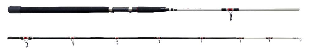 Троллинговое удилище длиной 240 см. Данный спиннинг рассчитан как на ловлю с применением минипланеров и планерных систем, так и для обычного троллинга глубинными воблерами или для работы с различными видами заглубителей (синкеров). Удилище имеет необходимую жесткость для правильной работы на больших нагрузках, создаваемых минипланерами. С другой стороны жесткость не чрезмерная, что позволяет нормально ловить и планерными системами. Крупные кольца на низкой ножке позволяют использовать как мультипликаторную, так и безинерционную катушку. Благодаря большой длине удилища можно удобнее развести лески и приманки при использовании одновременно большого числа удилищ.