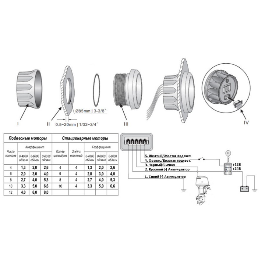 Тахометр аналоговый со счетчиком моточасов предназначен для подвесных и стационарных лодочных моторов.