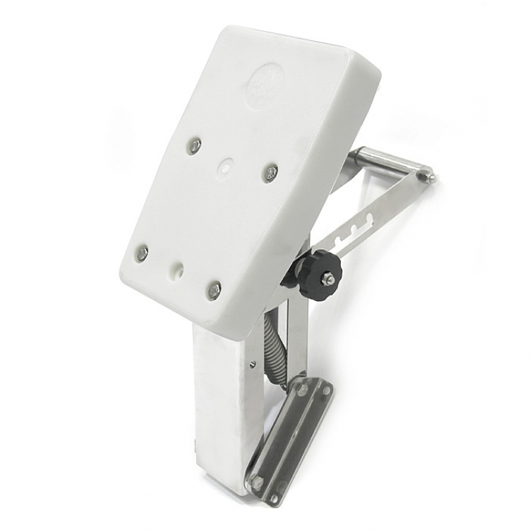 Имеет возвратную пружину, компенсирующую вес установленного двигателя и четыре фиксированных рабочих положения. Транцевая доска изготовлена из ПНД, а остальные детали конструкции - из нержавеющей стали AISI 304.