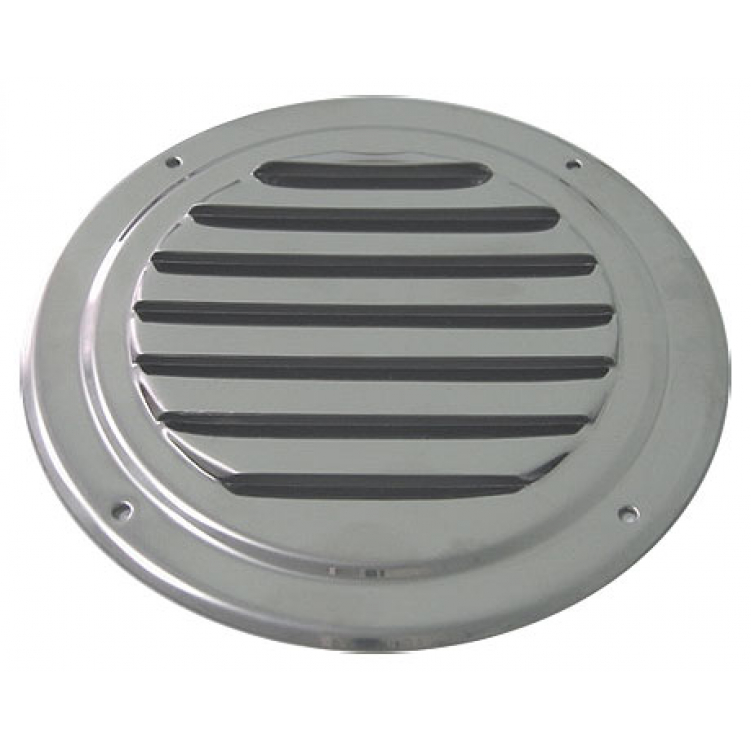 Вентиляционная решетка из нержавеющей стали, круглая. Два варианта — только решетка или решетка + брызгозащитный козырек.